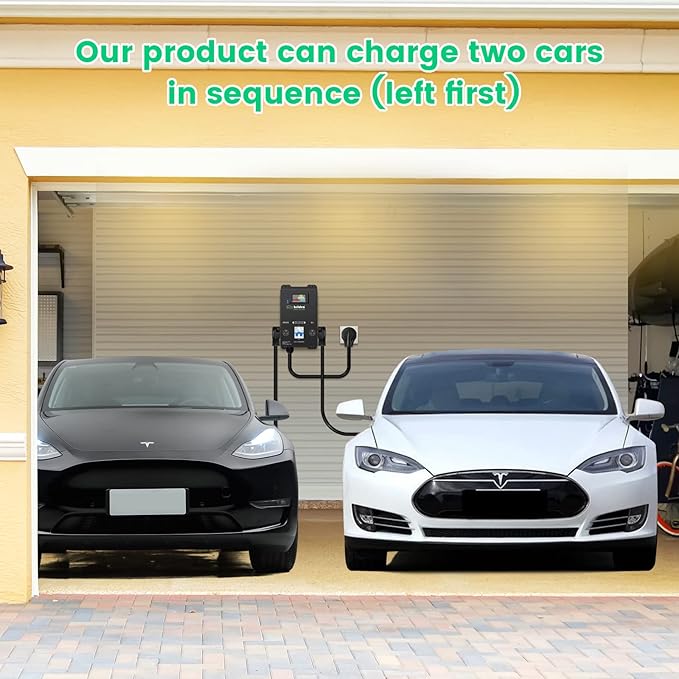 - SMART AUTO SWITCHING: Auto switching eliminates the risk of overheat or overcurrent during simultaneous operation. The splitter prioritize power to the dryer side. When the dryer is done, it will automatically switch to EV socket and charge your car, make home charging quite simple