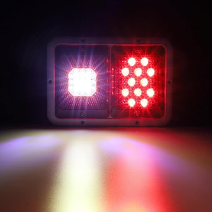 - These Double Vertical Taillights include 2 red lenses: 1 replaceable red led stop, tail, and turn light, 1 clear backup light with a red reflex lens border, and White LEDs (a Built-in reflex reflector removes the need for a separate reflector); This Led double tail light assemblies can be mounted oriented horizontally or vertically, whatever suits your application.