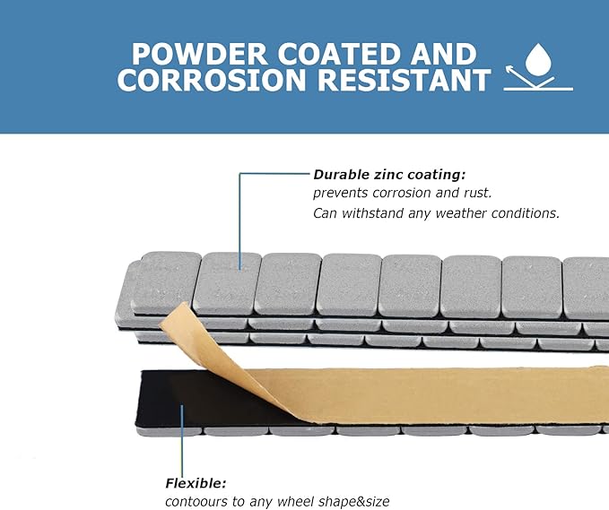 - High quality for durability: The balance are treated with a powder coating to prevent corrosion and rust, and can withstand any weather conditions your car normally experiences. Meanwhile, our wheel weights feature rounded corner stamping to easily contouring any wheel shape and size