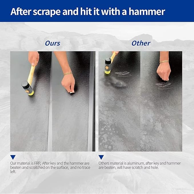 - 【Material】:1.5 mm FRP, 15mm PP Honeycomb.; Hardness of FRP ≧ 30HBa.; Tensile Strength of FRP ≧ 80MPa.; Bending Strength of FRP ≧ 150MPa.; Compressive Strength of PP Honeycomb ≧ 1.4MPa.; Bending Strength of PP Honeycomb ≧ 0.5MPa.; Load-Bearing Capacity of Sheet Metal ≧ 350pounds.;