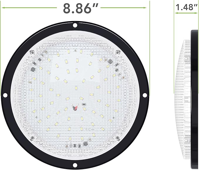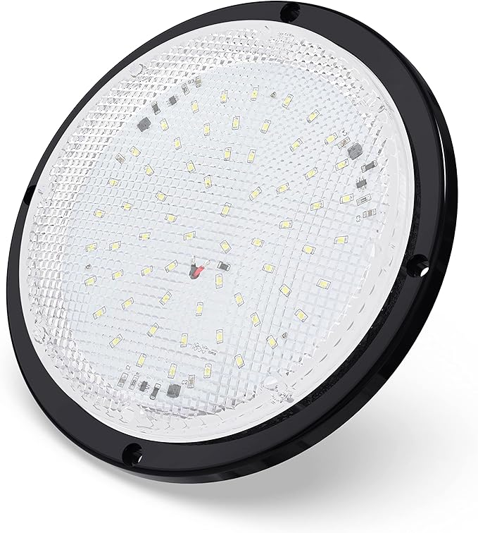 RV Trailer Camper 1000 Lumen 5th Wheel Black 8.5" Round Scare Porch 12V LED Light (LED Light 1000 Lumen Black)