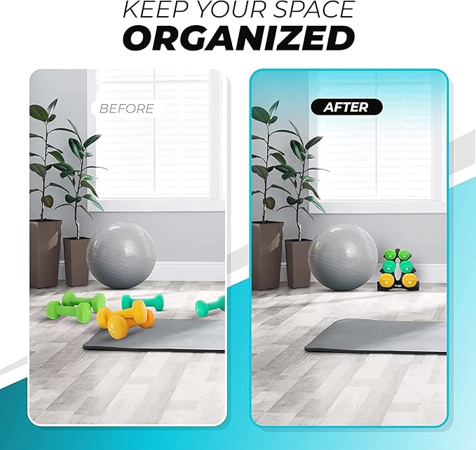 - FIT MULTIPLE DUMBBELL SIZES: The top level fits 1-2 lb dumbbells, the middle level holds 1-3 lb, and the bottom level accommodates larger dumbbells from 1-6 lb with ease