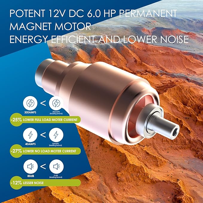 - Durable, Corrosion-Resistant Design - POLESTAR winches are built 12V DC 6.0 HP motor and 3-planetary gear train to deliver, faster line speed under load, with lower amp draw, Gear Ratio: 232:1, high-quality coatings, and stainless steel components, offering IP68-rated waterproof construction, and corrosion resistance. Designed for long-lasting performance, even in harsh, rugged environments.
