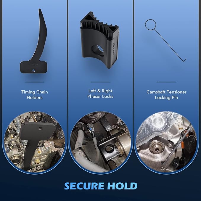 - Comprehensive Set: Orion Motor Tech's 3.6 Pentastar timing tool kit includes 3 timing chain holders, left and right phaser locks, and a camshaft tensioner locking pin to securely hold every part in place as you service your vehicle's timing system