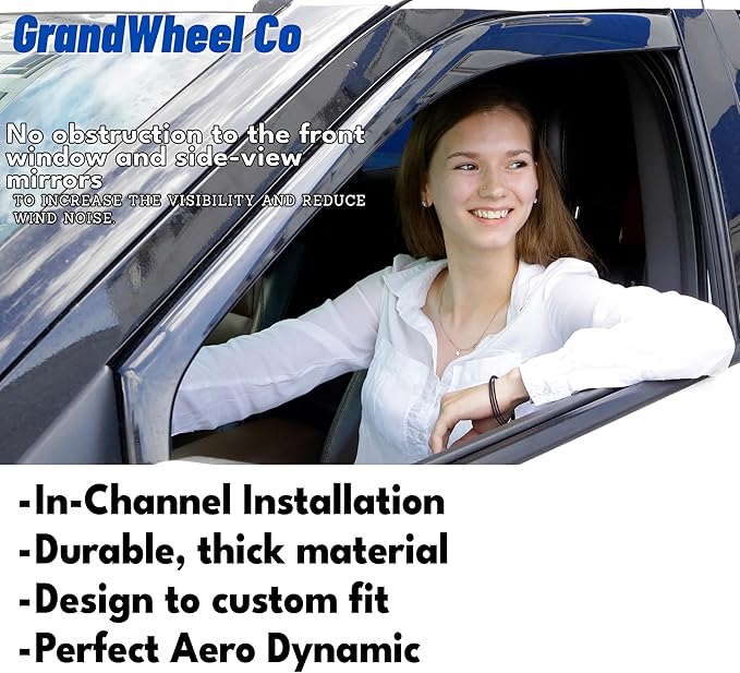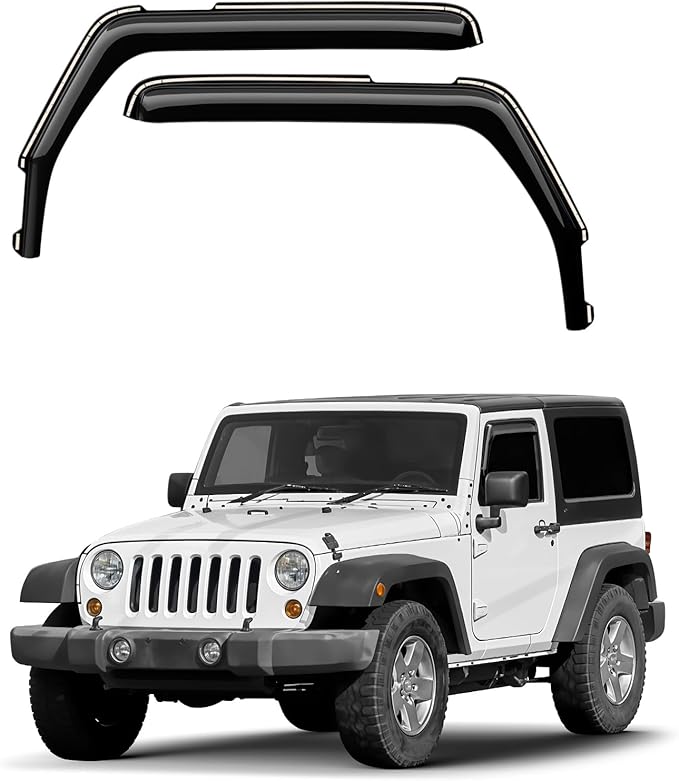Window Deflectors Smoke Tinted in-Channel Side Window Vent Visor Deflectors Rain Guards Compatible with Wrangler JK 2-Door 2007-2018 - 2pcs. GW0233