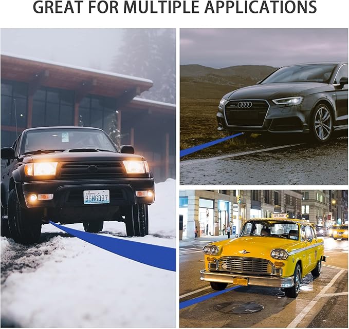- 【RECOVERY STRAP】This tow rope will make a perfect addition to your emergency roadside kit. The weather-resistant strap won’t shrink or stretch when used in rain, snow, or ice, giving you a long-lasting towing tool.