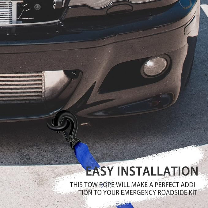 - 【EASY INSTALLATION】Our tow strap is easier to install on vehicles than other towing chains or ropes. Simply attach one hook strap to the underside of the vehicle you’re towing, and attach the other end to the towing truck.