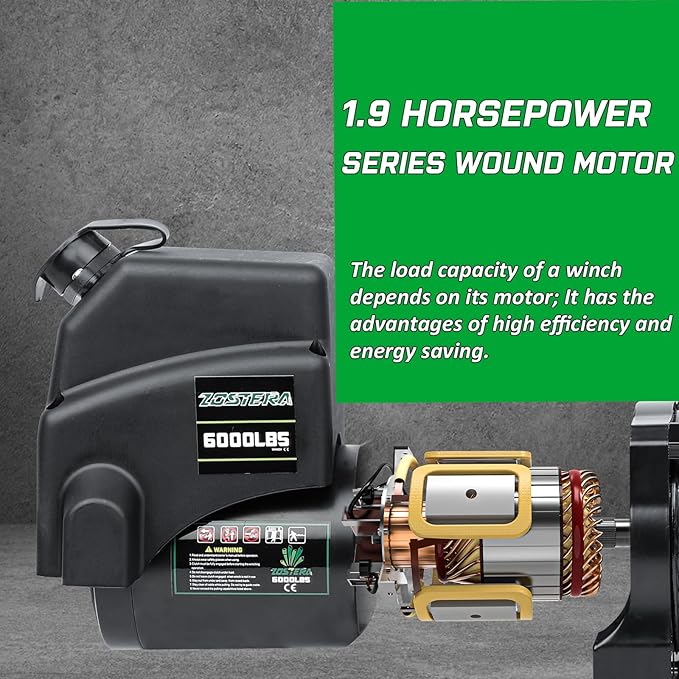 - 【Practical and convenient】ZOSTERA ATV/UTV Winch 12V Versatile Kit - 6000lb winch powered by a 1.9HP permanent magnet DC 12V motor, with continuous power output. In addition, its minimum cold start current is 10A. For the installation and use of winches, standardized installation dimensions are specified. Please ensure compatibility of mounting holes with your winch bracket before purchase.