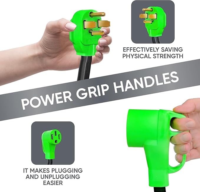 - 【EASILY PLUG & UNPLUG】 30 Amp to 50 Amp Adapter is designed with grip handles, makes easily to plug and unplug the connector. This NEMA 14-50 Adapter has 180-degree bent design, easy to store and use.