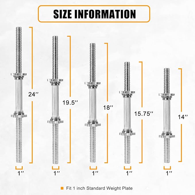 - Dumbbell Handle: 15.75" Long threaded dumbbell bars are made of heavy duty steel, chrome plated and rust resistant, accommodate all standard fits regular 1" hole plates, ideal for all kinds of dumbbell exercises