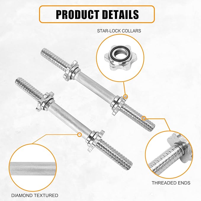 - Dumbbell Handle: 18" Long threaded dumbbell bars are made of heavy duty steel, chrome plated and rust resistant, accommodate all standard fits regular 1" hole plates, ideal for all kinds of dumbbell exercises