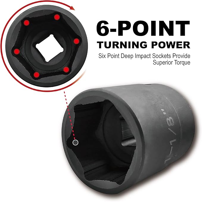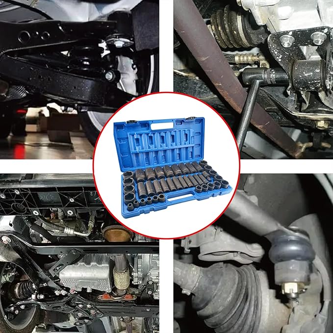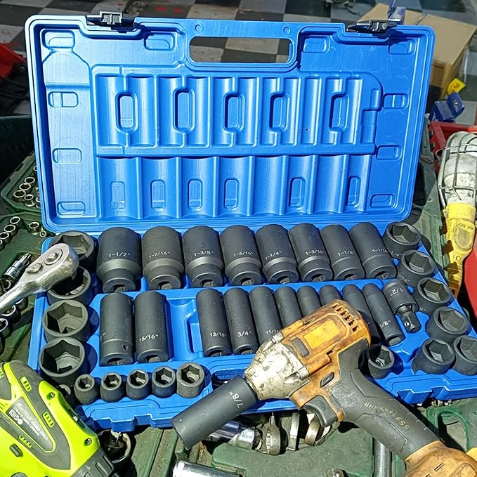 - 【39 Sockets Included】 This effort-saving SAE 1/2 inches drive impact socket set comes with the following pieces in standard and deep styles: 3/8", 7/16", 1/2", 9/16", 5/8", 11/16", 3/4", 13/16", 7/8", 15/16", 1", 1-1/16", 1-1/8", 1-3/16", 1-1/4", 1-5/16", 1-3/8", 1-7/16", & 1-1/2".And one 1/2" universal joint.