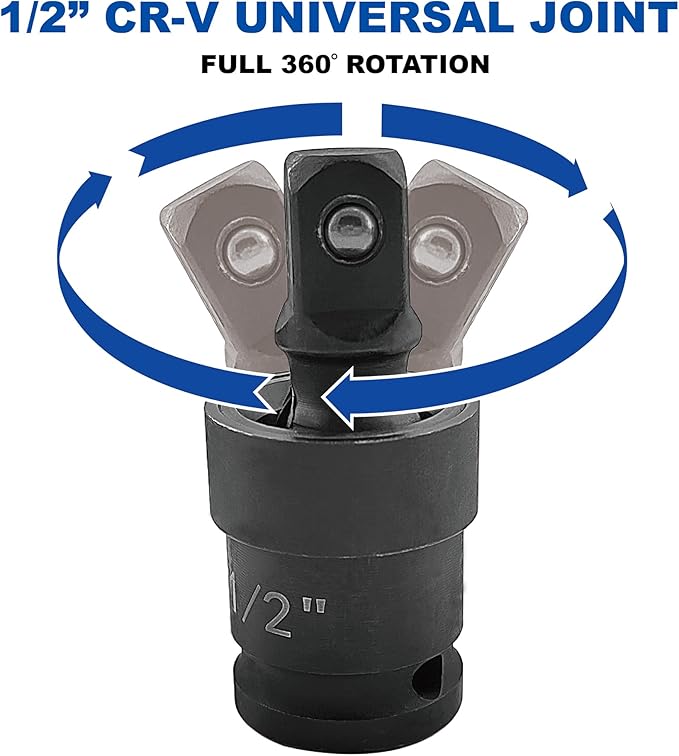 - 【Superior Material】Forged with cold heading CR-V steel, our 1/2 inch impact socket set has high hardness and durability, and can withstand greater torque from impact tools.
