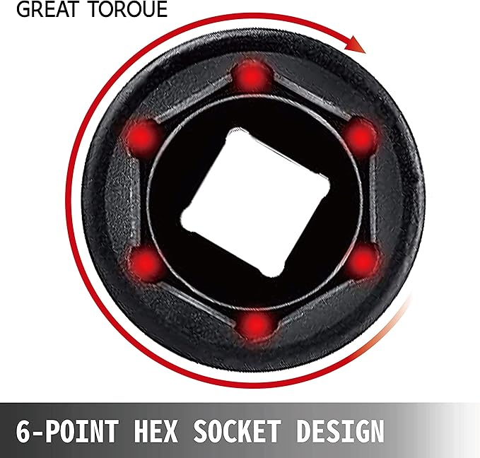 - 【Superior Material】Forged with cold heading Heavy-Duty CR-V Alloy Steel, our 3/4 inch impact socket set has high hardness and durability, and can withstand greater torque from impact tools. The impact socket set features a 6-point, high-torque design that contacts and grips the stronger flat sides of nut or bolt head, not the weaker corners.