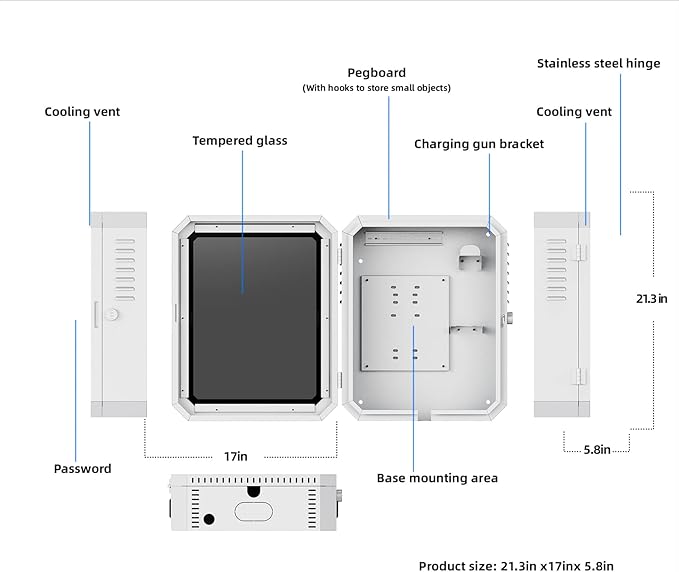 - ใ๐๐ญ๐ฎ๐ซ๐๐ฒ ๐๐ก๐๐ซ๐ ๐๐ซ ๐๐จ๐ฑใThe charger box use 1.2 mm cold-rolled steel sheets with excellent performance, precision cut and welded, fine grinding and polishing, polymers materials coating, frosted texture, beautiful and anti rust. Exposed hing and screws used the 304 stainless steel materials, make ensure that not rust in any environment, up to 15 years of use.