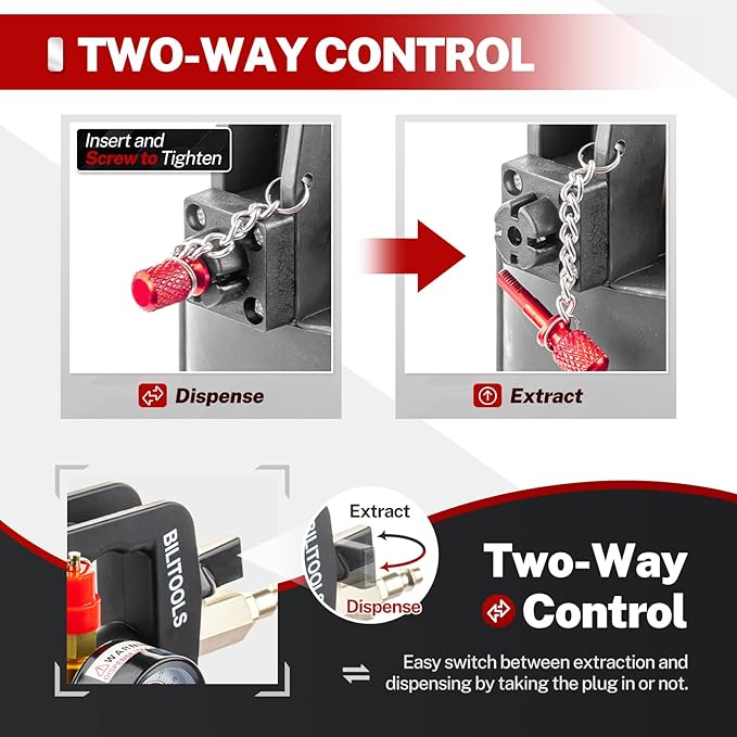 - SAFE AND CONVENIENT DESIGN: This ATF fluid transfer kit features a dual-control mechanism for instant switching between extraction and dispensing modes via plug insertion/removal. Built with a safety valve and pressure gauge, it ensures real-time vacuum monitoring and automatic pressure release to eliminate operational risks