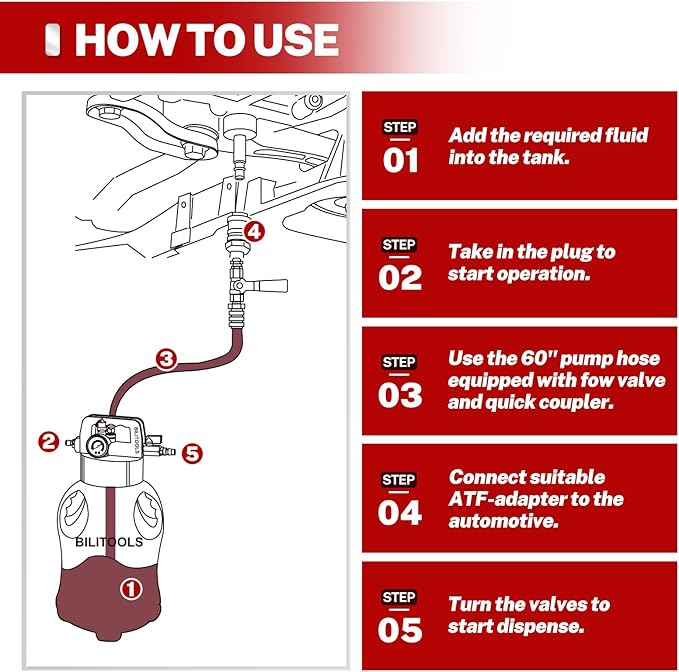 - NO OIL LEFT BEHIND: This compressed air-powered vacuum tool swiftly extracts and refills automatic transmission fluid (ATF) with precision. Engineered for maximum fluid recovery, it eliminates residue, reduces waste, and keeps your workspace spotless