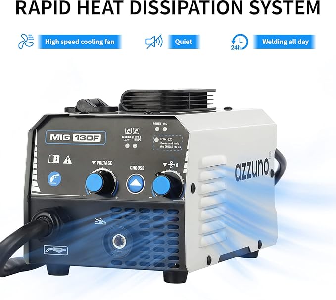 AZZUNO MIG Welder,Flux Core Welder Machine 110V 130Amp, Gasless MIG Welding Machine IGBT Inverter Welder Portable Wire Feed Welder (110V)
