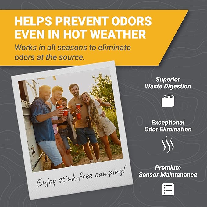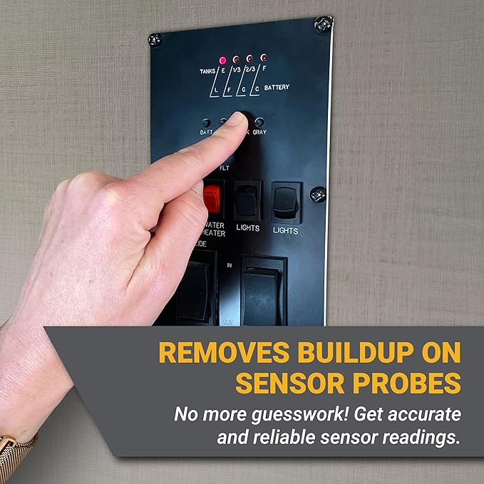 - Maintains working sensor probes. Stops black water tank sensor probes from misreading by liquifying waste before it builds up and clings to probes. Digests grease, oil, and food debris in gray tanks.