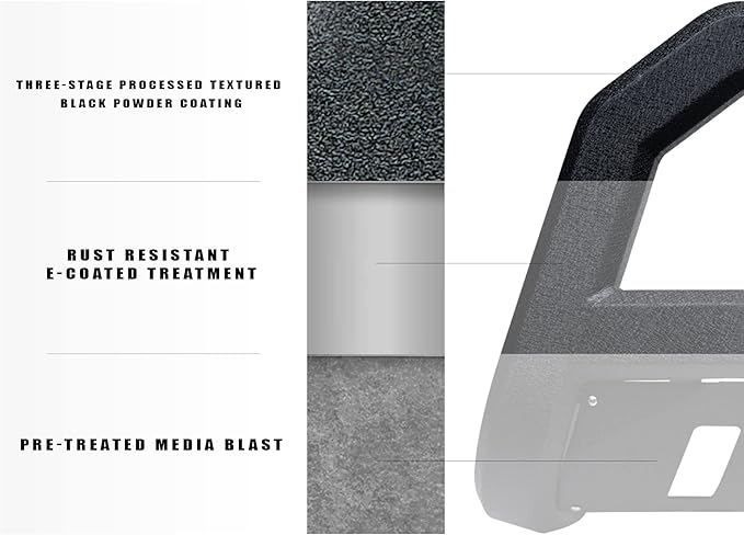 - [ COLOR & COMPONENTS ] - Matte Black With Aluminum Skid Plate In Color ; Three-Stage Finishing For Superior Corrosion Resistance ; Product Is Pre-Treated To Remove Containments / Impurity, Then Coated ; Each Kit Contains 1x AR Series Bull Bar / Guard, Vehicle Specific Mounting Brackets, License Plate Relocation Brackets & Required Installation Hardware With Easy To Follow Installation Guide That Requires A Basic Mechanic Tool Set