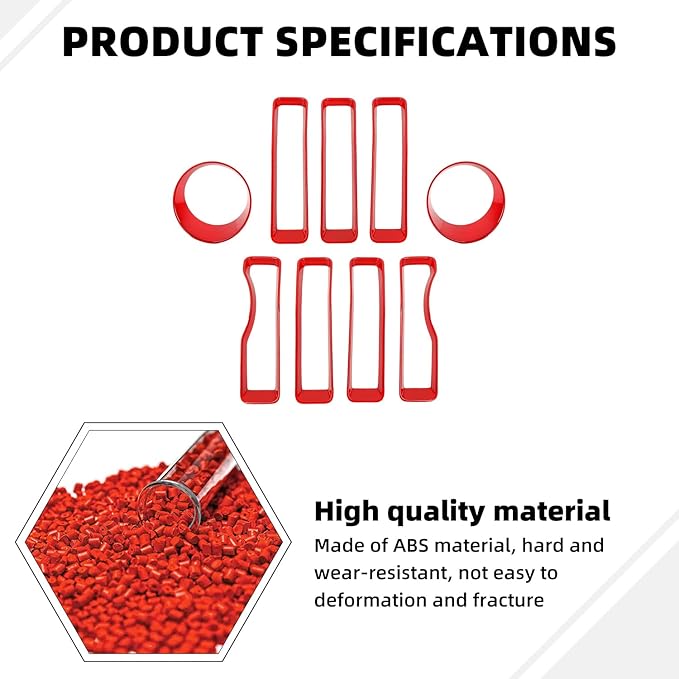Grill Insert+Headlight Turn Light Cover Fit for 2018-2023 Jeep Wrangler JL JLU Sport/Sports Only,Not for Sahara,Rubicon 4xe(Red)