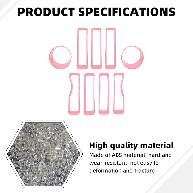 Grille Grill Insert+Headlight Turn Light Cover Compatible with 2018-2023 Jeep Wrangler JL JLU Sport/Sport S Only,Not for Sahara,Rubicon 4xe(Pink)