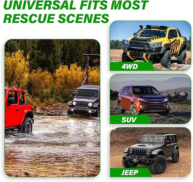 - Ultra-Strong Synthetic Rope: 12-strand braided super tough UHMWPE rope is lightweight, easy to handle, and spliced without sharp wear. Boasts an impressive 8500 lbs breaking capacity, making it a reliable choice for off-road adventures.