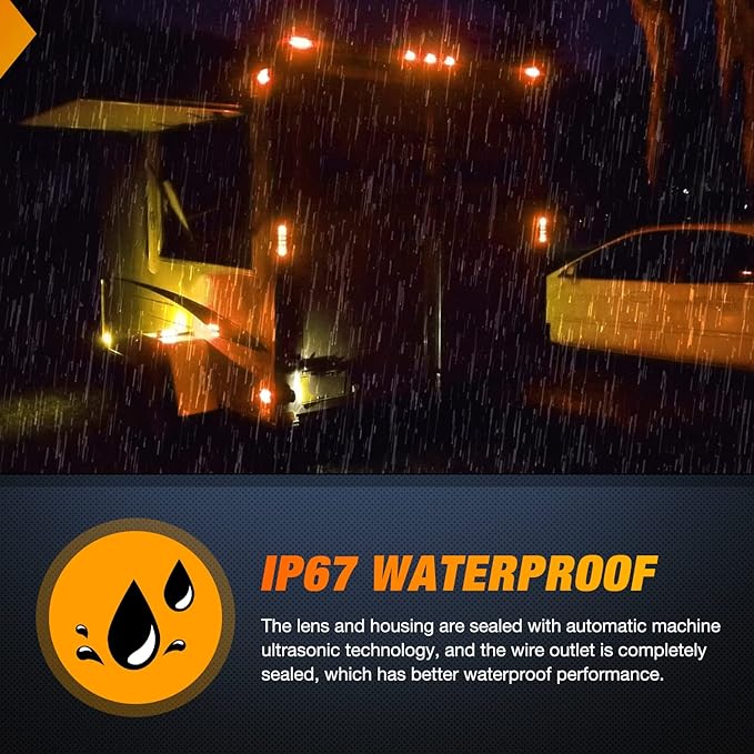 - 【Super Bright】Each trailer tail light is equipped with 10PCS high-quality 3030 LED chips to output super bright amber light, high brightness of left and right turn signal light, low brightness for Taillight, providing maximum visibility and safety. Compared with halogen bulb, LEDs have the characteristics of fast light emission, low energy consumption, and high brightness.