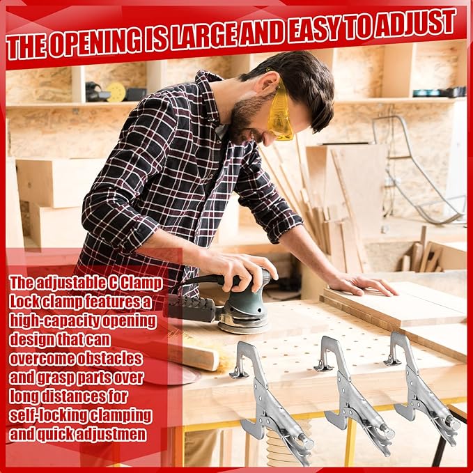 - Self Locking Clamp: our adjustable C clamp locking pliers are designed with a thickened rotating pad; With high capacity opening, they allow obstacles to be overcome and parts to be grasped at long distances; Self locking clamp and quick adjustment are easy to release without pinching