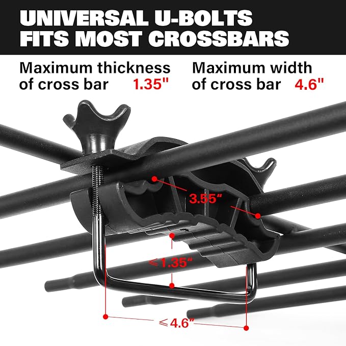 - ✅ EASY ASSEMBLY - The welded frame comes in four sections, easily mounting onto most roof-rack crossbars with 4 U-bolts and other universal necessary mounting hardware, please contact us for free replacement if the components are missing or defective.
