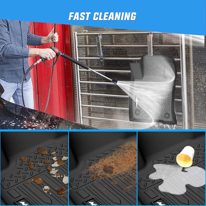 - FAST CLEANING - You can wash off messes that end up on your floor mats in seconds with soap and water. In some cases, a simple spray of the hose will do the trick.