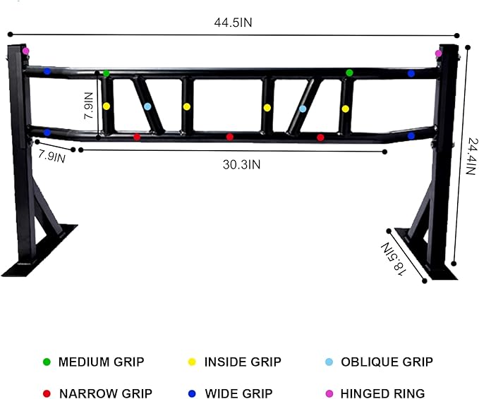 - Dimension: Wall mount chin up bar assembled dimensions: L 50” x W 23.5” x H 18”. Max Capacity: 440 lbs. Offers you the options for traditional, narrow, angled, and neutral grip pull-ups