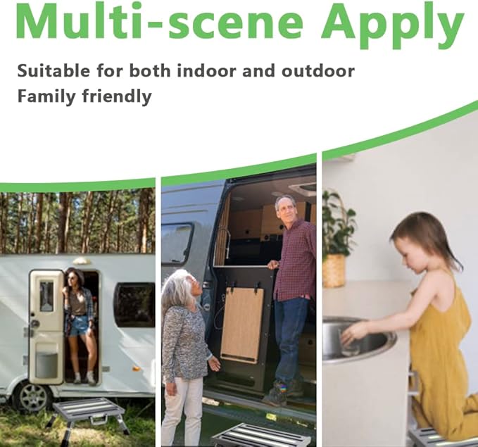 - ANTI-SLIP & IMPROVED VISIBILITY: With the anti-slip strips on the platform to increase friction, this RV step provides a stable and secure stepping surface which achieves heightened safety. You won’t have to worry about tripping or slipping accidents