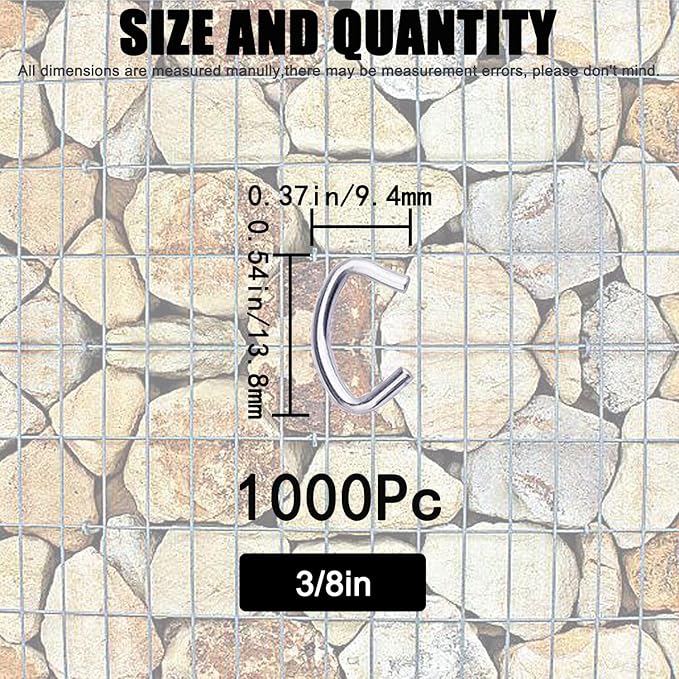 - 【Package information】In this kit, You will get 1000Pcs 3/8" Galvanized Hog Rings Assortment Kit. Easy crimping and closure, Hog Ring kit is spring-loaded to hold hog rings in jawsded to hold hog rings in jaws, 360Pcs galvanized hog rings (Galvanized to Prevent Rusting).