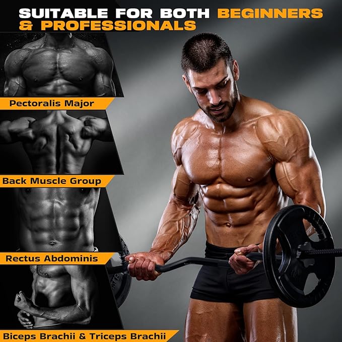 - 💪EXERCISE MULTI-POSITION MUSCLES - Our barbell bar is helpful for biceps, triceps, abdominal muscles, etc. You can also cooperate with the fitness bench for training, and assist in the exercise of shoulder, back and leg muscles.