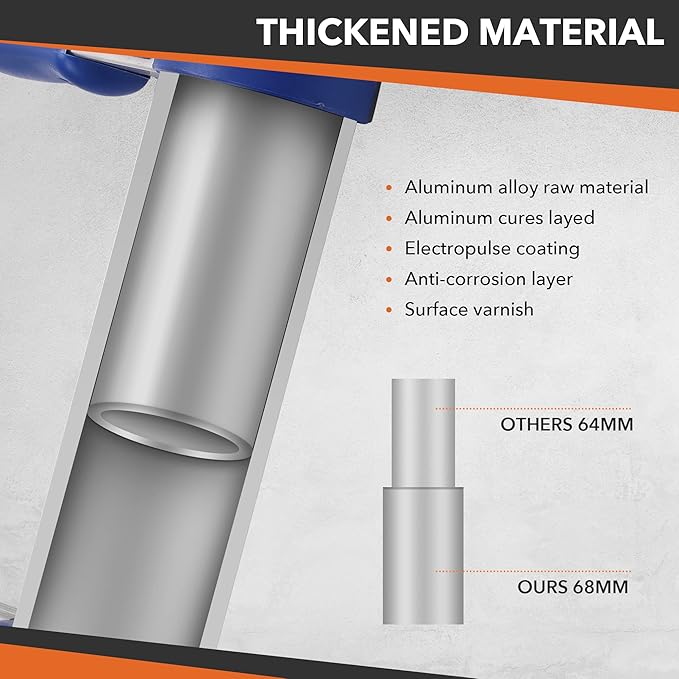 - đăRobust Frame & Anti-skid Designă scientific and solid structure is adopted. Our telescopic ladder has passed the certification of safety standard EN131, and its load-bearing capacity is up to 330 pounds. In addition, the anti-slip cap is carved with deep horizontal stripes and ultra-wide steps to ensure your safe climbing.