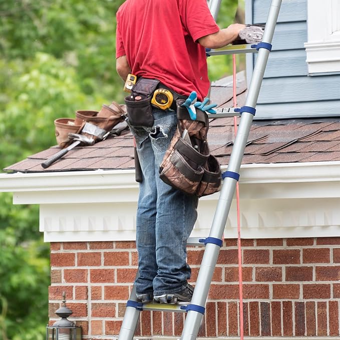 - đăSelf Safe Locking MechanismăThe professional extension mechanism is very convenient to use, enabling you to adjust the height quickly and easily. Just pull ladder up for a while, hear a "click", and confirm that the left and right locks are in the "locked" position, then you can use it safely.