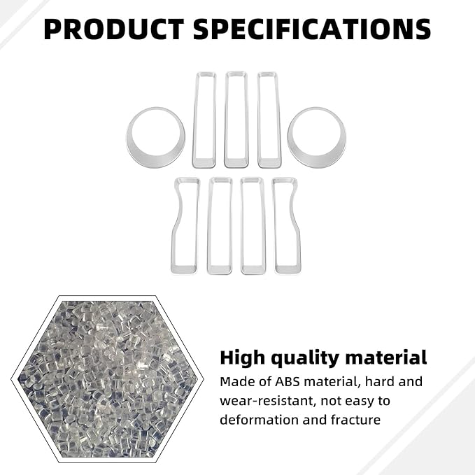 Grille Grill Insert+Headlight Turn Light Cover Compatible with 2018-2023 Jeep Wrangler JL JLU Sport/Sport S Only,Not for Sahara,Rubicon 4xe(Silver)