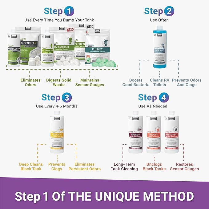 - RV Digest-It+ camper toilet treatment is designed to work with The Unique Method to ensure clog- and odor-free camping, no matter what your style is: hookups, dry camping, full-time, extreme heat.