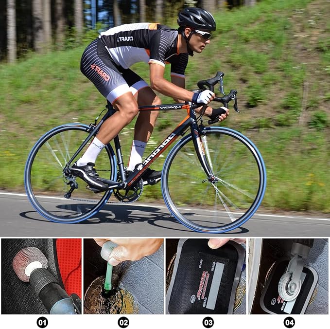 - Easy to Use: to use the patch for tires, first clean and polish the torn area of the tire, then apply rubber glue, remove the backing from the patch and place the patch correctly on the puncture position, then roll the tire patch tool to squeeze out the air, and finally remove the clear plastic backing from the patch.