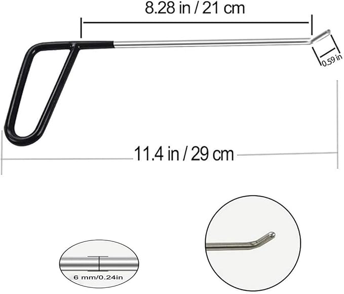 - 【Easy to Operate】Comfortable rubber handle, stiff stainless steel rods, not easy to bend, not rust, just push the dent from inside.