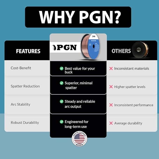 PGN Solid MIG Welding Wire - ER70S-6 .035 Inch - 2 Pound Spool - Mild Steel MIG Wire with Low Splatter and High Levels of Deoxidizers - For All Position Gas Welding
