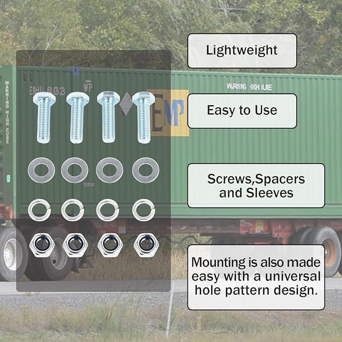 - Packaging includes - Steel truck tool box mounting brackets with screws, spacers and sleeves.