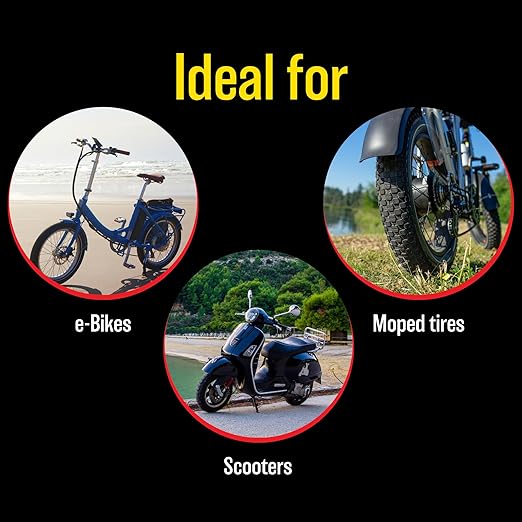 - 24/7 reliable performance: Trust this tire sealant for both prevention and repair of punctures and slow leaks. Our non-flammable and non-corrosive formula provides continuous protection for bikes, mobility scooters, mopeds, one wheels, and scooters, ensuring peace of mind on every ride.