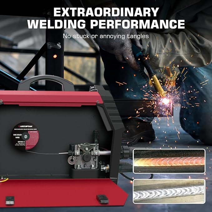 - High-quality: ARCCAPTAIN's ER70S-6 mig welding wire .030" meets industry standards(Net Weight: 2lbs), ensuring consistent performance, superior strength. With its smooth feeding and stable welding parameters, you can achieve optimal penetration, high deposition rates, and exceptional overall welding performance.