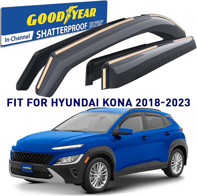 Goodyear Shatterproof in-Channel Window Deflectors for Hyundai Kona 2018-2023, Rain Guards, Window Visors for Cars, Vent Deflector, Car Accessories, 4 pcs - GY007884