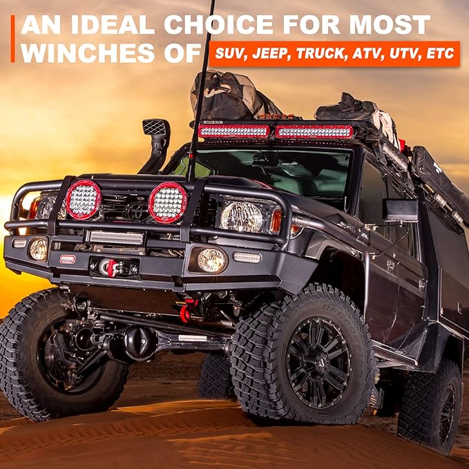 - WINCH ROPE KIT: Including synthetic winch rope with a sleeve and a hook. An ideal choice for most winches of SUV, Truck, ATV, UTV, etc.