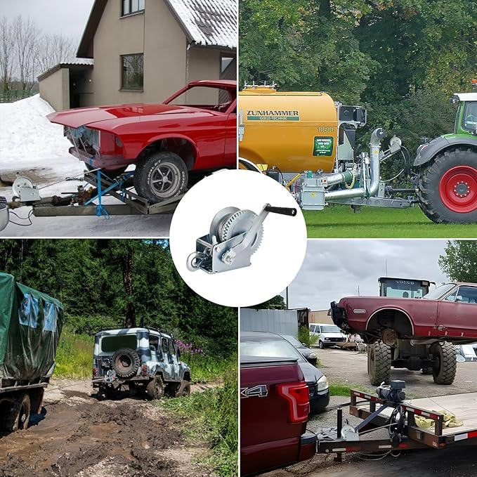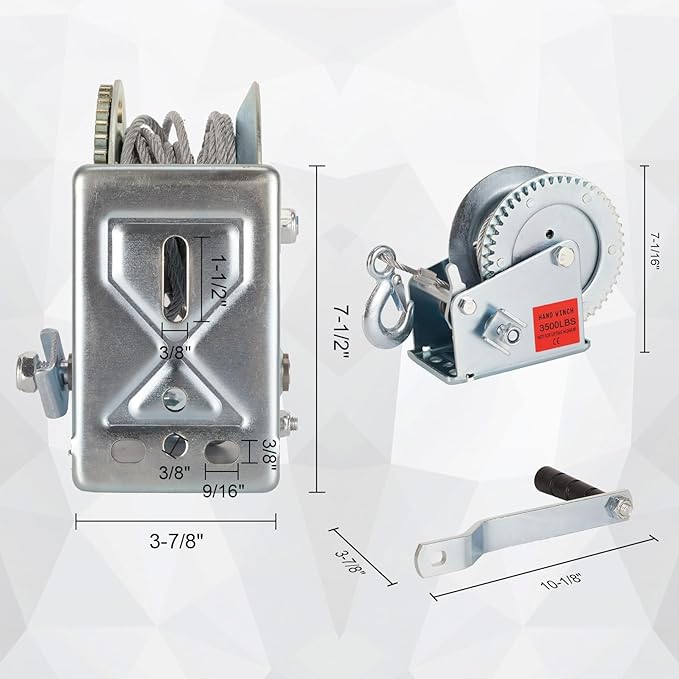 - Enhanced Load Capacity: The hand winch is designed with an impressive load capacity of 3500 lbs, making it ideal for heavy-duty tasks. With a gear ratio of 4:1 8:1, it reduces the required labor output and increases traction, enabling effortless lifting and improved efficiency.