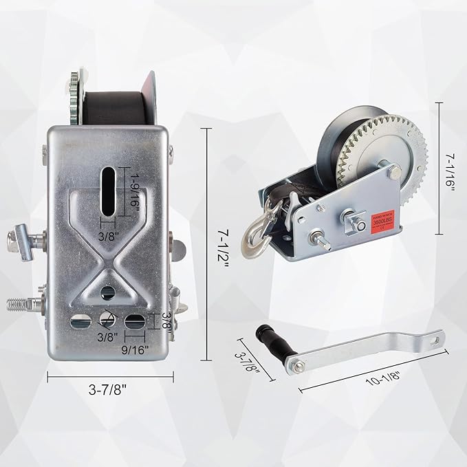 - Enhanced Load Capacity: The enhanced load capacity of this heavy-duty boat trailer winch is capable of exerting a pulling force of 3500 lbs,measuring 7.48 inches x 3.93 inches. It features a durable 26 ft long and 2-inch wide black polyester strap. The mounting base. It is lighter than steel wire rope, will not rust.