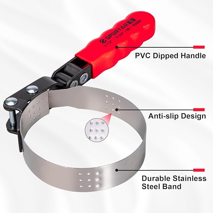 - Practical Tool: The band of swivel oil filter wrench band is made from steel and heat-treated for higher strength and durability. Every wrench has an ergonomically designed soft PVC handle for a comfortable strong grip
